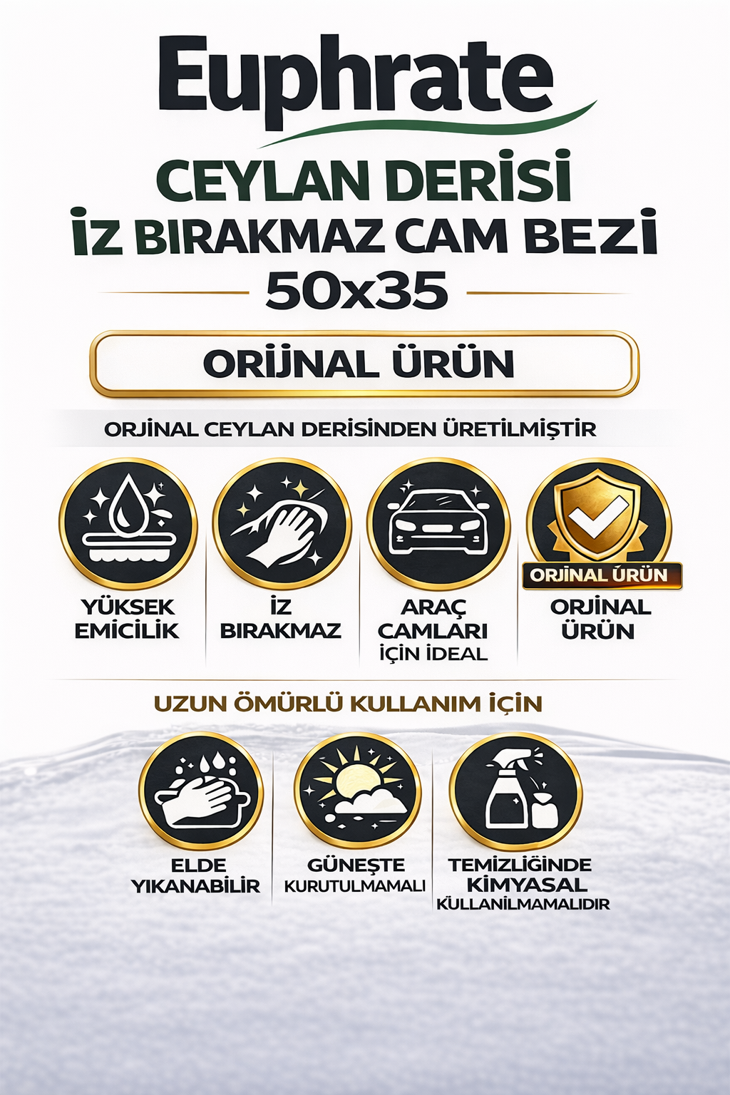 EUPHRATE CEYLAN DERİSİ İZ BIRAKMAZ CAM BEZİ 50×35 1 ADET