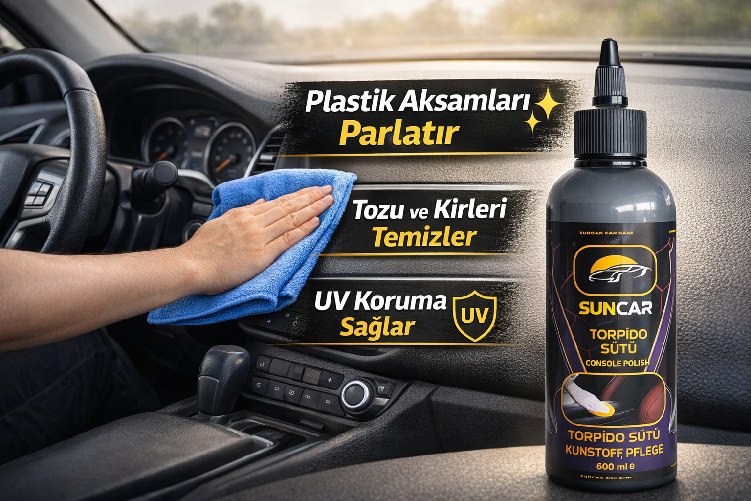 Suncar Torpido Sütü 600 ml – Plastik Bakım ve Parlatıcı
